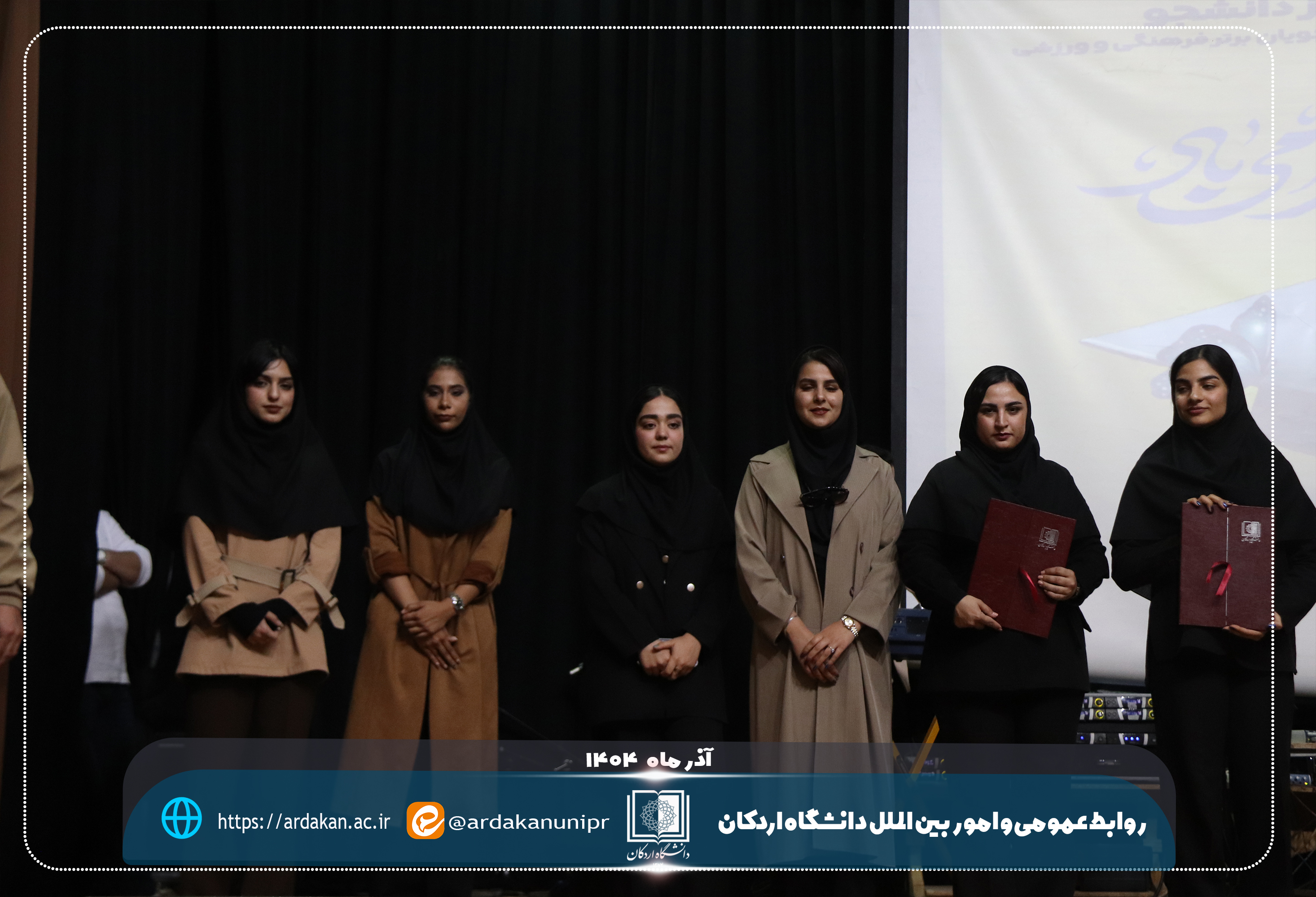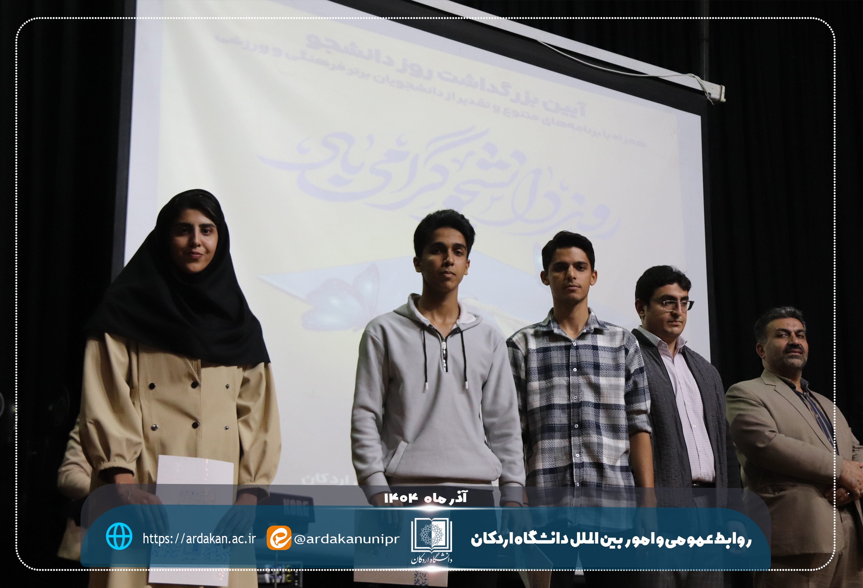 در بخشهای مختلف این جشن، از دانشجویان برتر فرهنگی، ورزشی و دانشجویی تقدیر بهعمل آمد. همچنین از انجمن علمی علوم آزمایشگاهی دامپزشکی دانشگاه اردکان که در هجدهمین دوره جشنواره بینالمللی حرکت با نشریه «نات» موفق به کسب رتبه برگزیده شده بود، تجلیل شد. در ادامه، از تیم رباتیک دانشگاه اردکان که توانست در رقابتهای ملی جام آبی مقام دوم مجموع مسابقات کشور را بهدست آورد نیز تقدیر شد و این موفقیت بهعنوان یکی از افتخارات علمی دانشگاه مورد تحسین قرار گرفت.